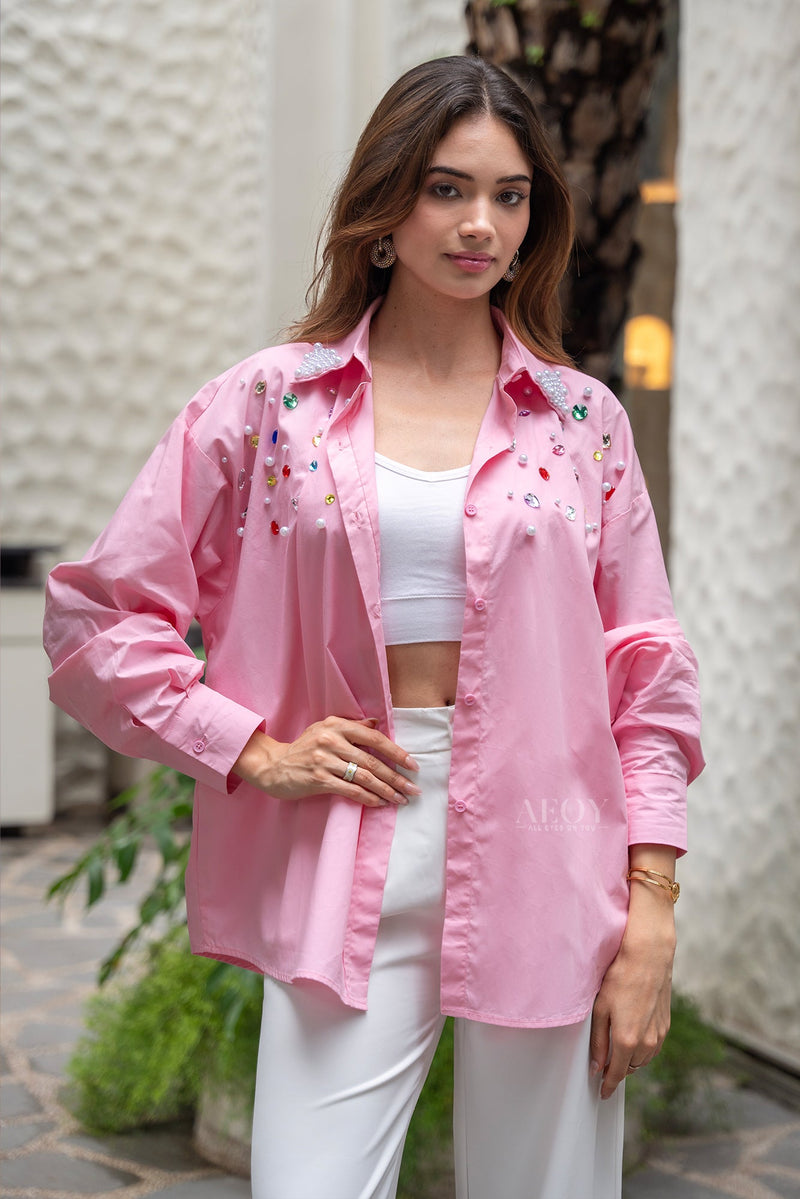 Pink-Pearl Embellished-Shirt