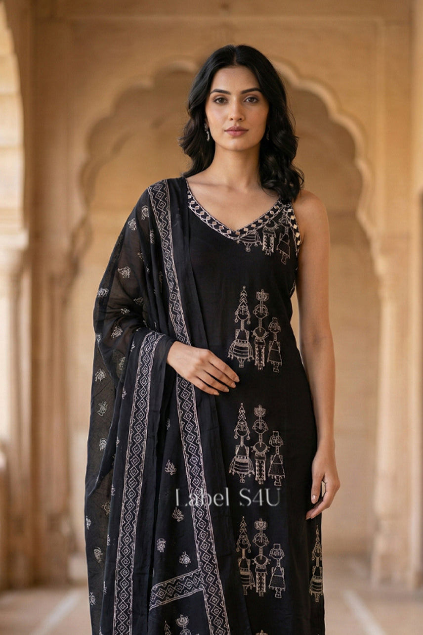 Upgrade your everyday ethnic wardrobe with this elegant black suit set. Designed in a timeless black shade this outfit is perfect for casual outings, office wear, small get-togethers, and day-to-evening styling.The comfortable silhouette gives a graceful fall while allowing easy movement throughout the day. Paired with a matching dupatta, this black suit is a versatile choice for women who prefer simple, classy, and effortless ethnic wear.If you are looking for a comfortable black suit for daily wear or casual occasions, this piece is a must-have in your wardrobe.