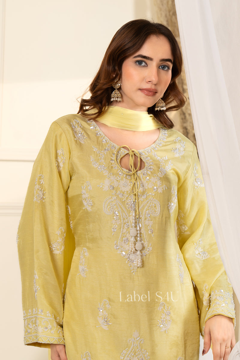 Butter Yellow Embroidered-Suit Set