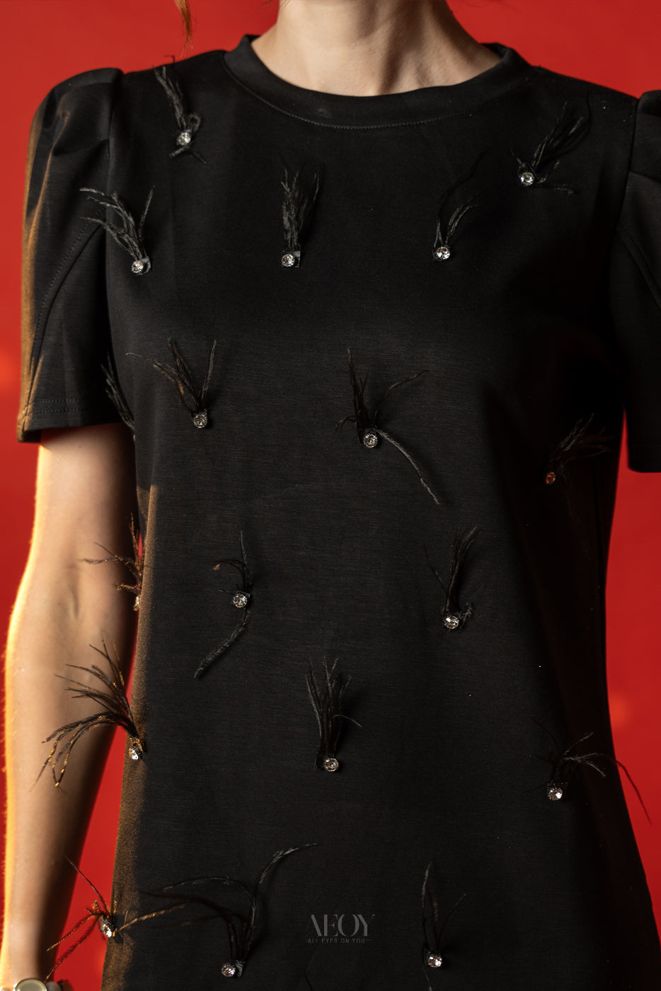 Feather Trim- Party Dress