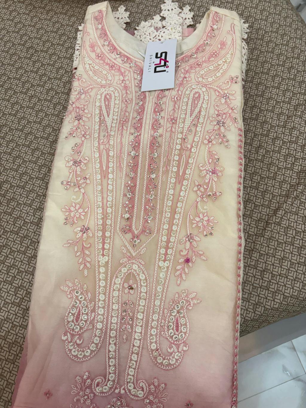 Elevate your festive wardrobe with this elegant pastel pink embroidered suit set, designed for timeless grace. Featuring delicate thread embroidery and refined lace detailing, this silhouette blends softness with subtle luxury. Crafted for comfort and effortless elegance, it’s a perfect pick for celebrations that call for understated charm.