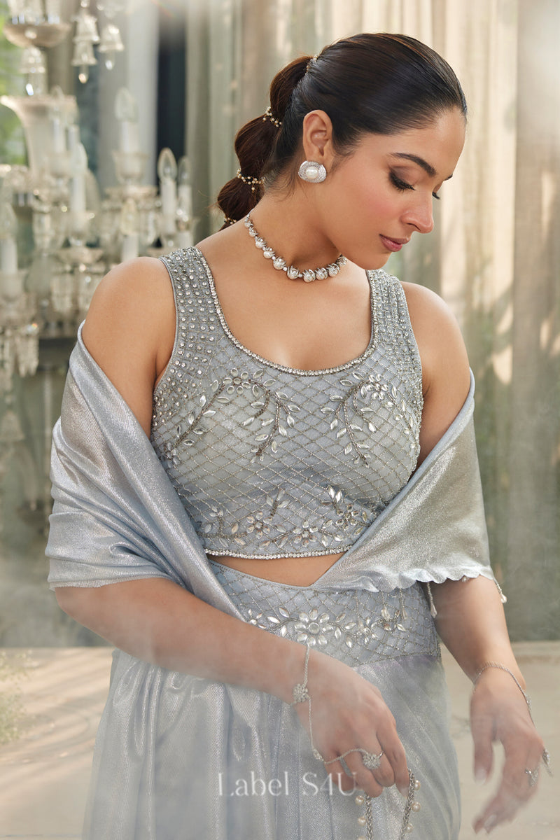 Blue Bling-Pre-Drapped Saree