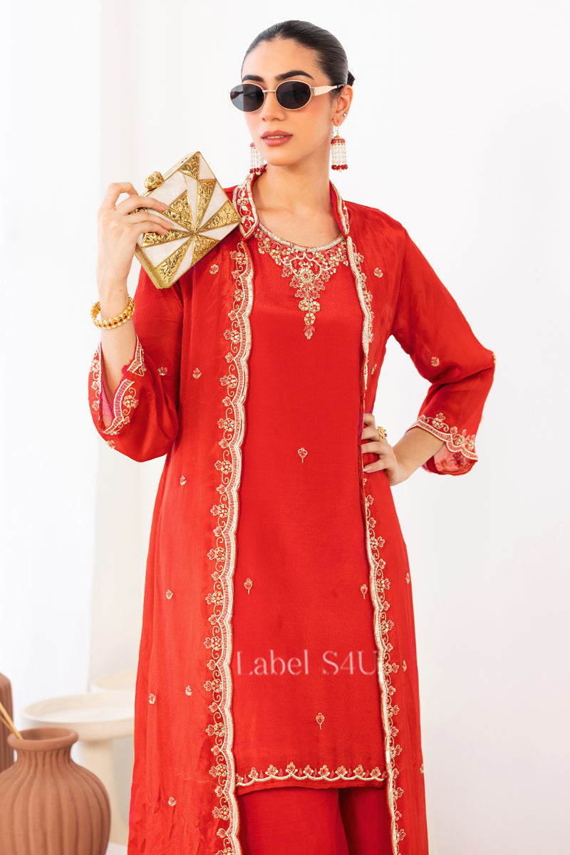 Classic Crimson Handwork-Jacket Set