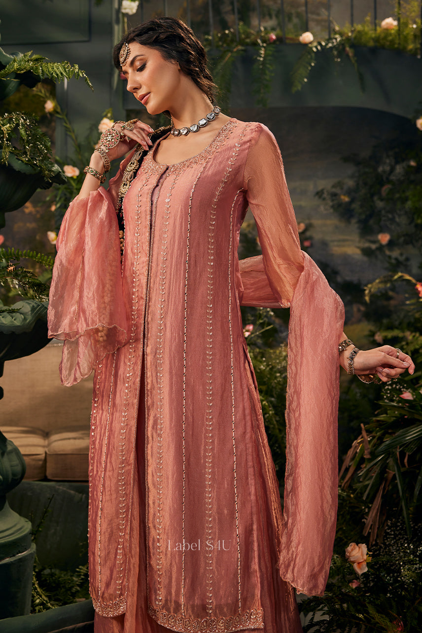 Blush Aura Center Slit Tissue-Anarkali
