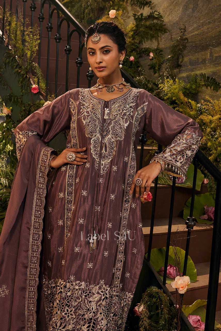 This elegant Pakistani suit set features a straight-fit kurta highlighted with intricate all-over embroidery and scalloped hem detailing. Crafted in soft, flowy fabric with a rich matte finish, it comes paired with matching bottoms and a coordinated dupatta for a refined festive look. The timeless silhouette offers comfort while delivering effortless grace, making it a versatile addition to your ethnic wardrobe.