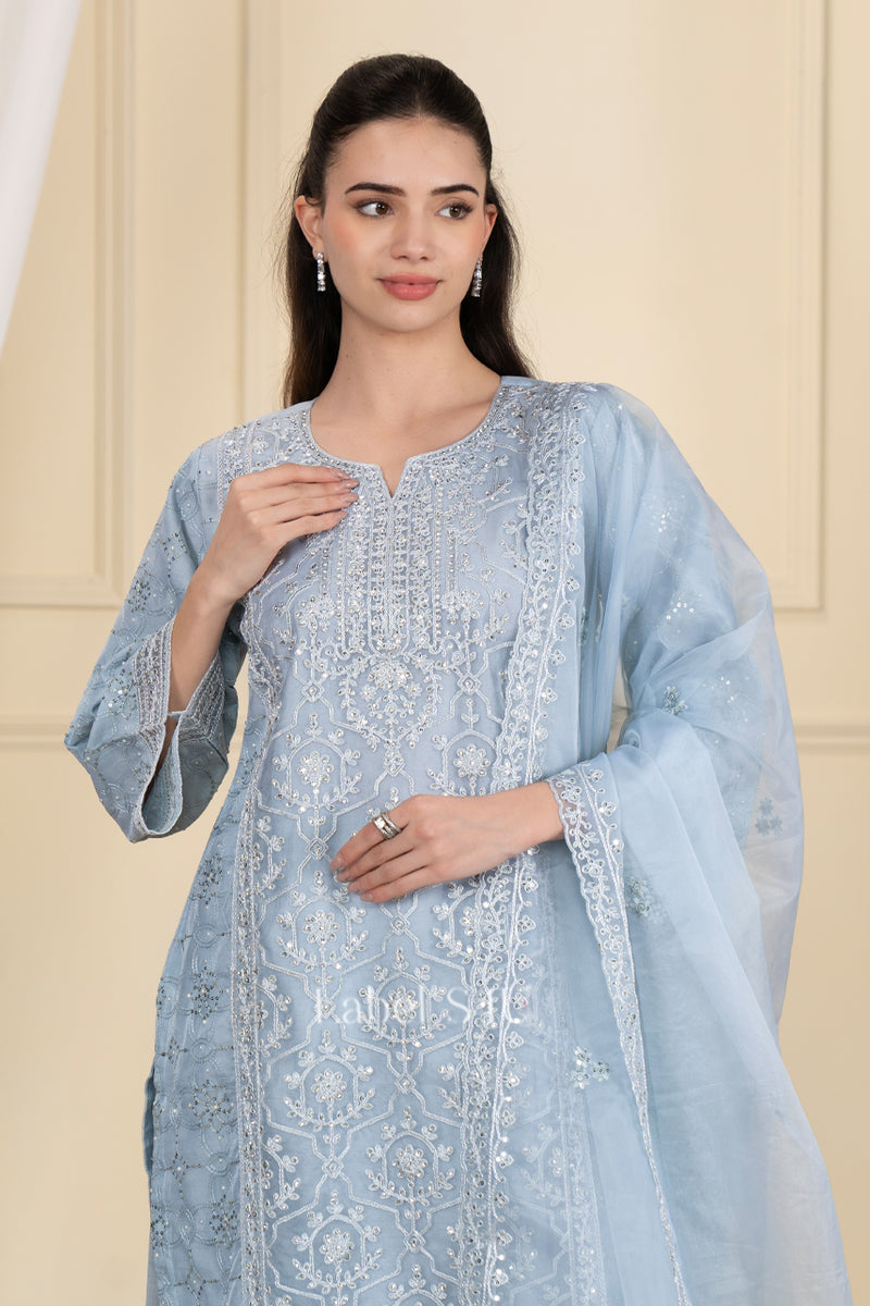 Sky Blue Handwork-Palazzo Set