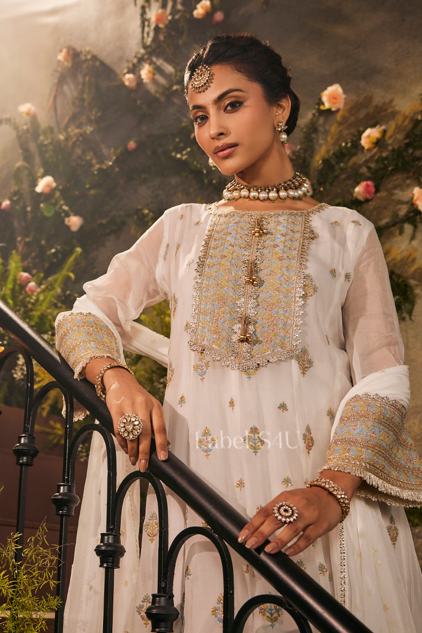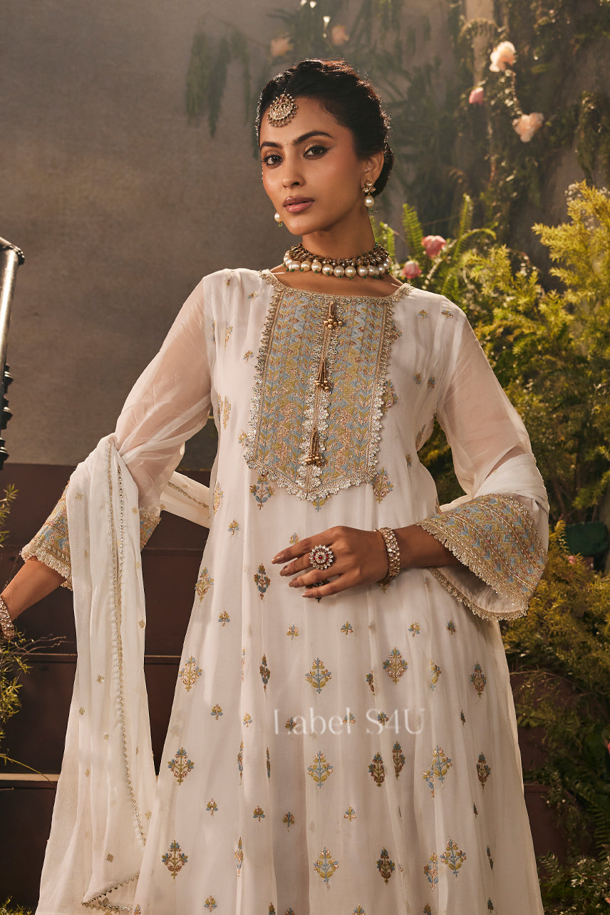 White Zari Work-Anarkali Set