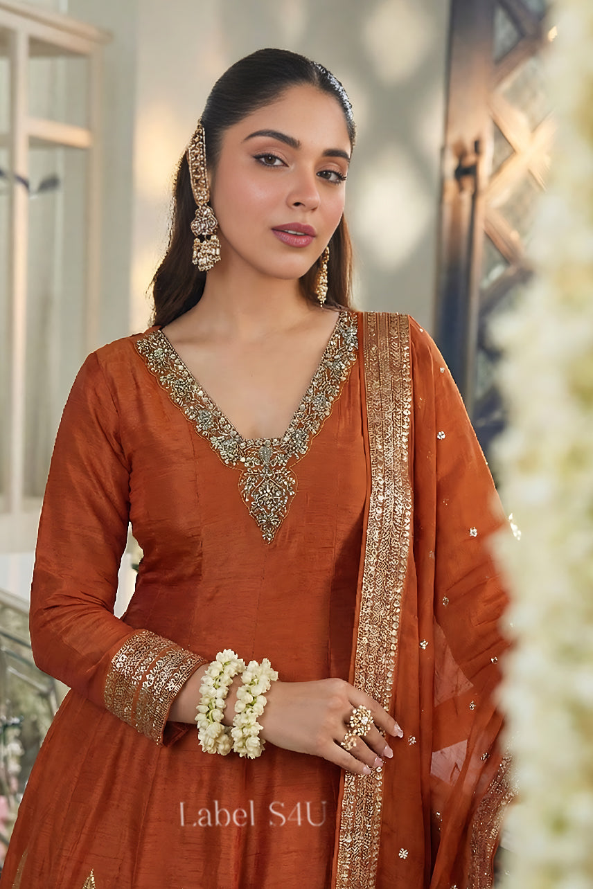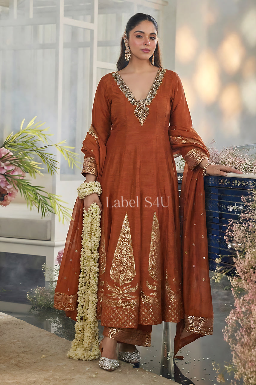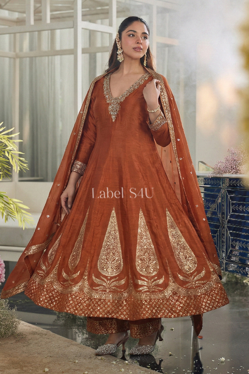 Step into festive elegance with this regal navy blue Anarkali set, designed to make a statement with effortless grace. The flared silhouette is enhanced with intricate traditional motifs and delicate detailing that add depth and richness to the look. Crafted in a lightweight, flowy fabric, it drapes beautifully while keeping you comfortable through long celebrations.