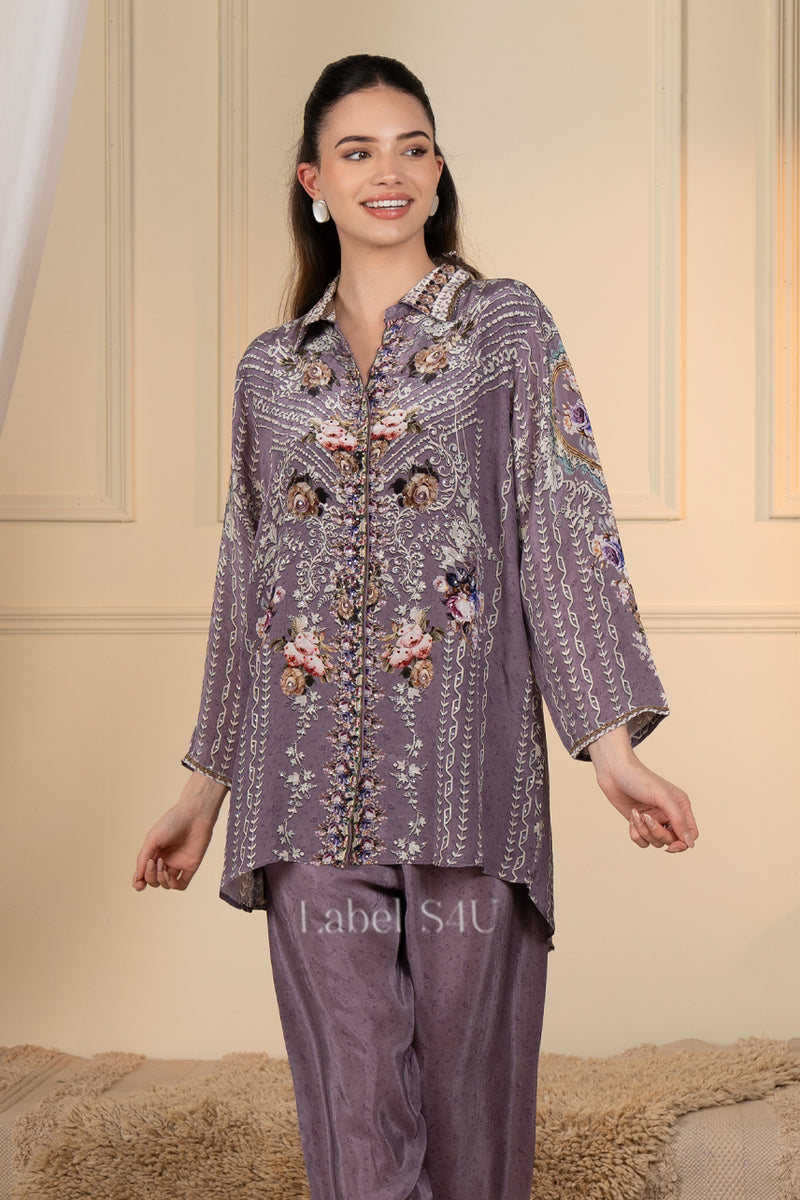Purple Printed Crepe -Co-ord set