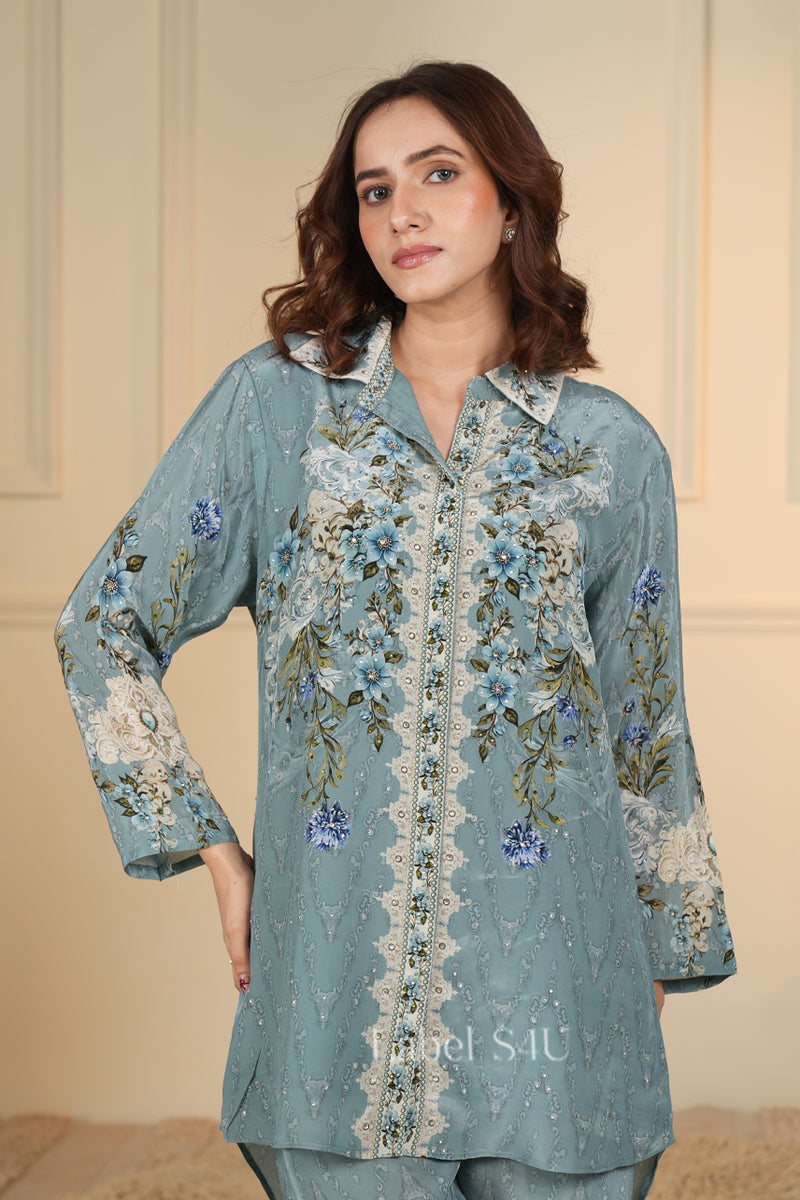 Dusty Blue Crepe-Co-ord Set