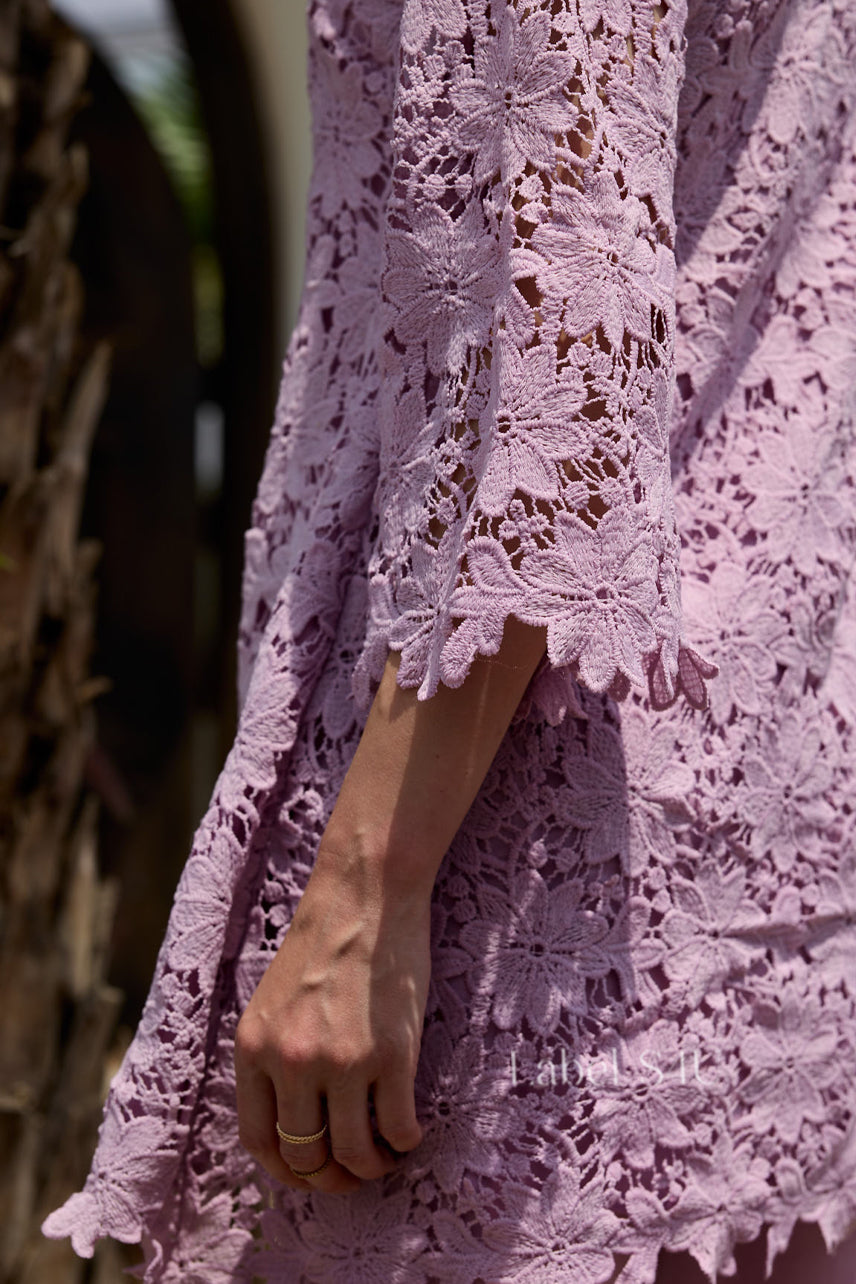 Step into effortless elegance with this lavender lace overlay co-ord set designed for modern festive dressing. The straight top features intricate all-over lace detailing with scalloped edges, paired with matching straight pants finished with lace hems for a coordinated look. Crafted in premium lace fabric with a soft lining, this pastel festive co-ord set offers a lightweight feel with a refined finish.