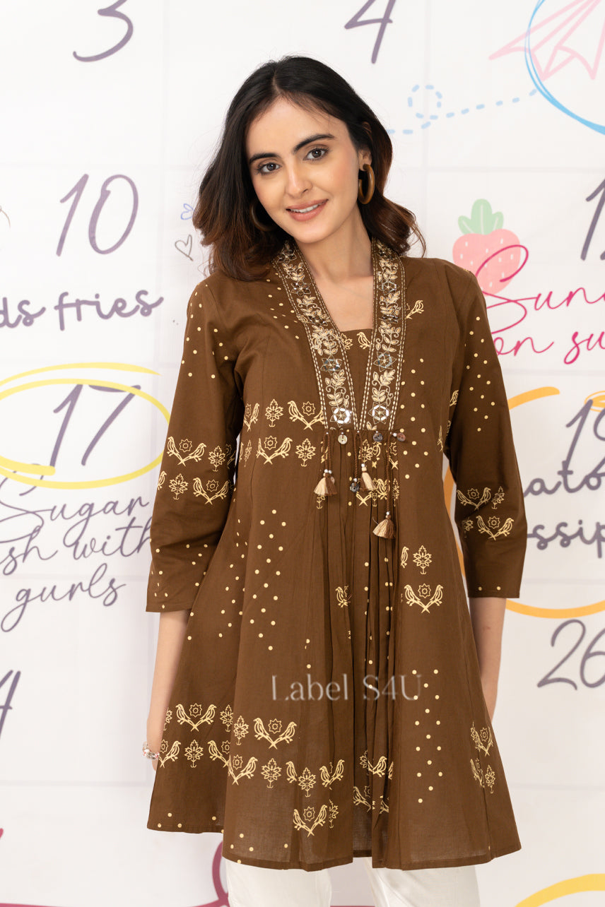 Mocha Folk Printed-Short Top