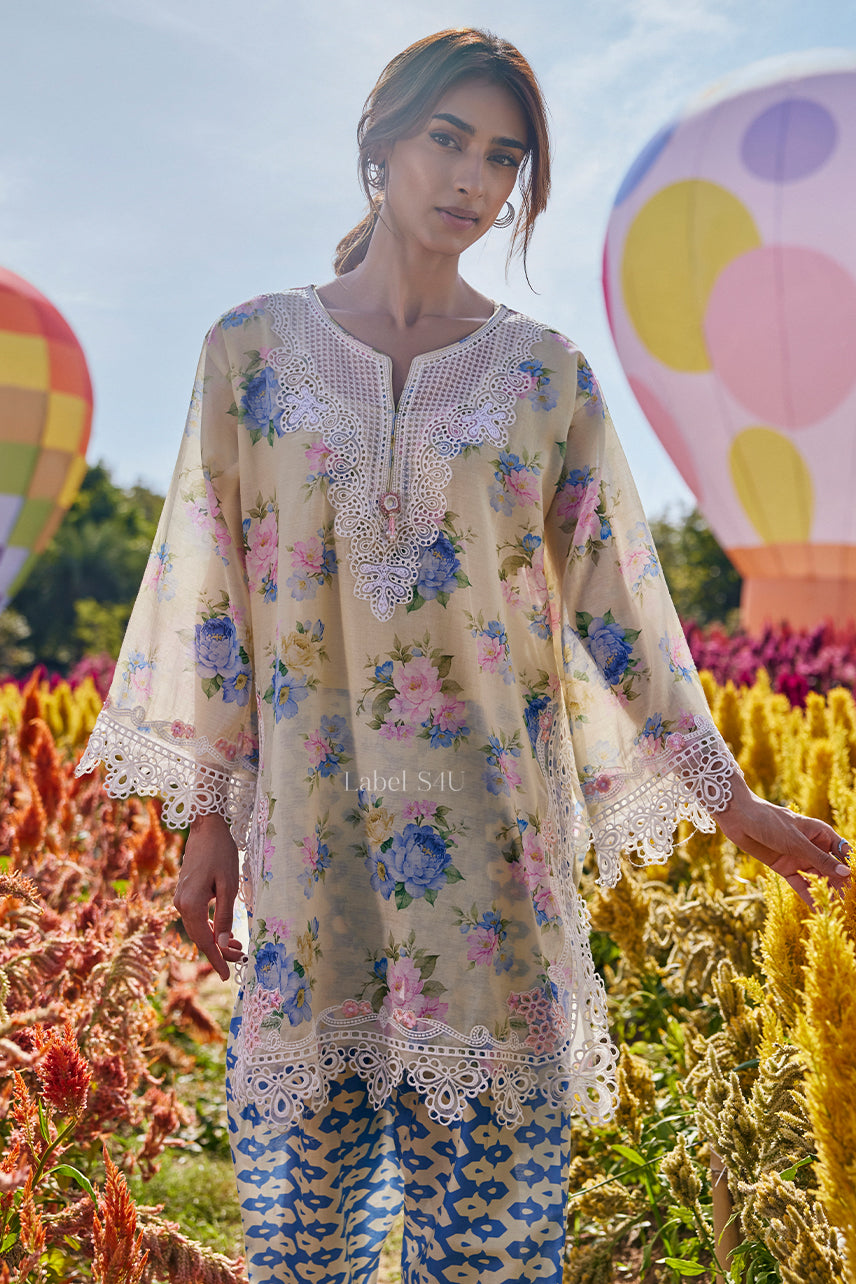 Crafted in breathable cotton, the set captures effortless summer elegance. Featuring delicate floral prints, intricate lace detailing along the neckline and hem, and contrasting printed pants, this cotton co-ord is perfect for summer days, daytime functions, poojas, and family gatherings. Light, graceful, and comfortable, it’s designed for women who love soft-color outfits with a fresh seasonal touch.