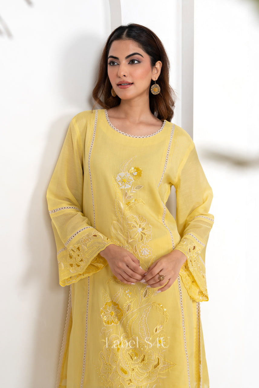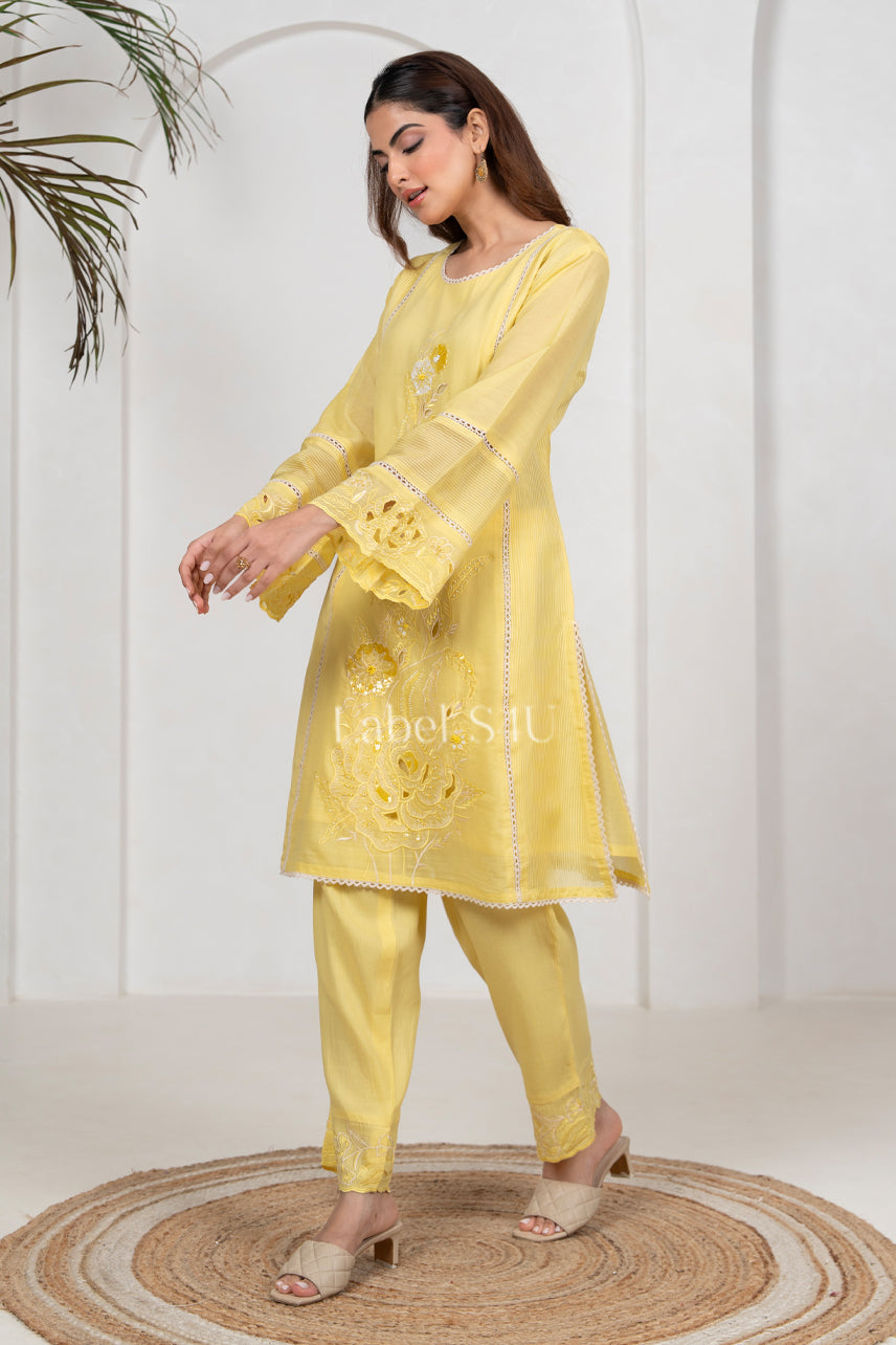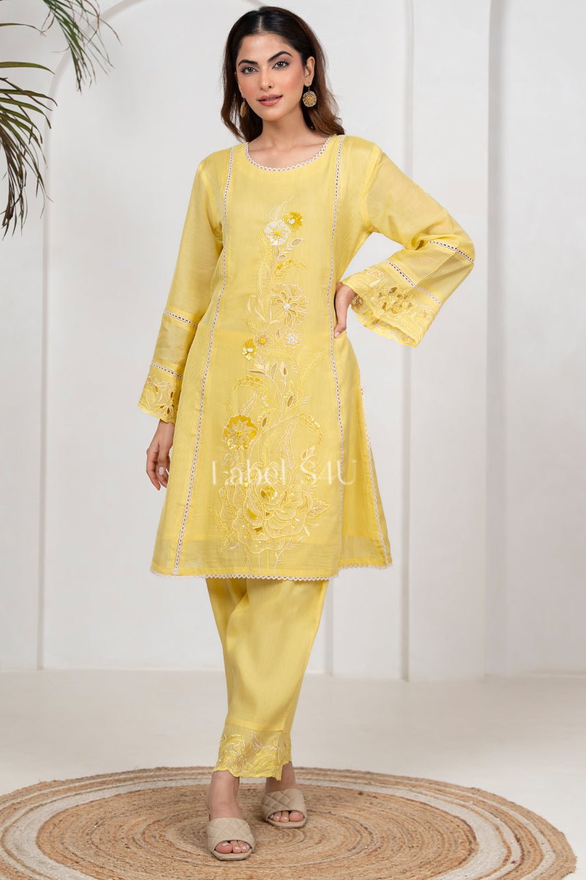 Lightweight, stylish, and graceful – this embroidered yellow co-ord set brings together modern silhouettes with traditional detailing. Ideal for festive looks, family gatherings, and more.