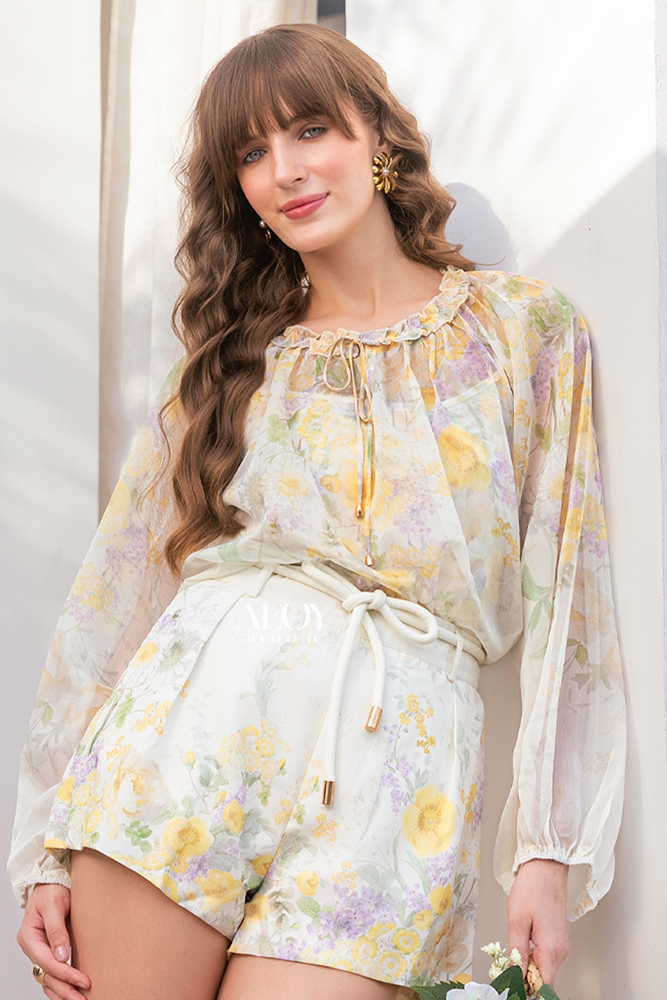 Let your outfit do the smiling in the Marigold Short-Set, a blend of soft florals and relaxed luxe. Whether you're strolling through sunlit streets or sipping cold brews with your girls, this set is your go-to for warm-weather ease and charm.